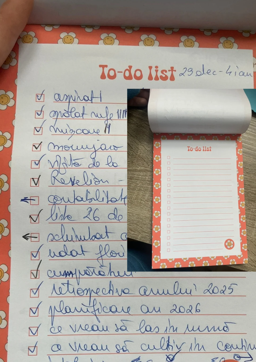 De menționat: eu nu sunt o persoană minimalistă. Vei vedea multe caiete, cu multe lucruri în ele. Dacă rezonezi, minunat. Dacă nu, să știi că sunt oameni pentru care o agendă simplă e tot ce au nevoie. Important e să înțelegi ce funcționează pentru tine.