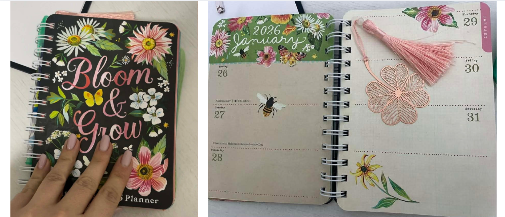 2 Jurnalul de recunoștință - este o practică pe care am început-o în ianuarie 2026, pentru că mi-am dorit să îmi încep și să îmi termin zilele mai conștientă de mine. Am luat o agendă goală pe care o aveam prin casă, am găsit niște instrucțiuni pe Pinterest și am decis să încerc. Deocamdată merge foarte bine. Nu e ceva spectaculos, dar e o practică foarte intimă pentru mine.